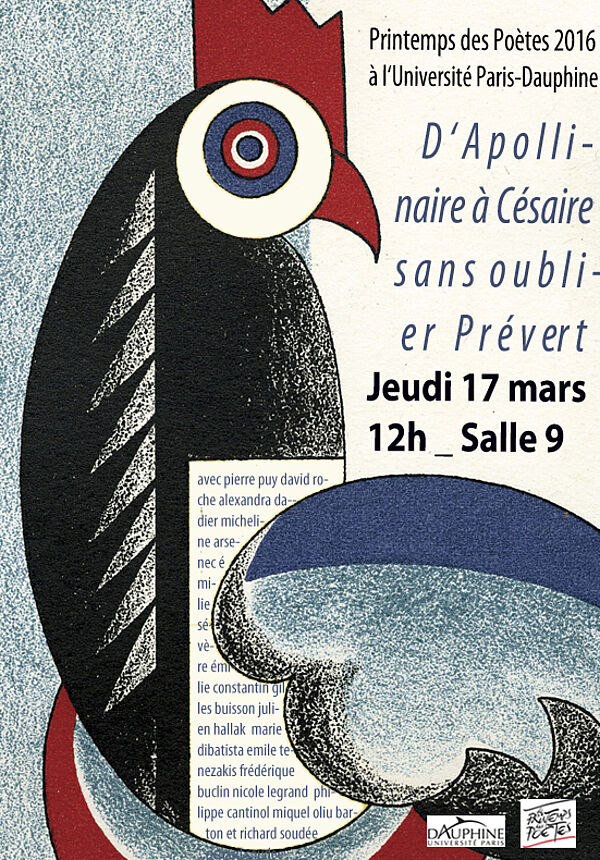 18e édition du Printemps des Poètes à l'Université Paris-Dauphine, le jeudi 17 mars 2016, à 12h en salle 9 (accès par le hall du 3e étage).